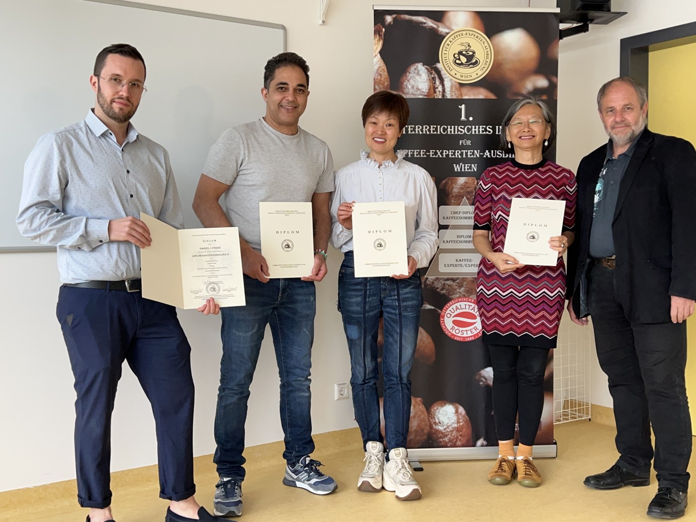 Herzliche Gratulation den vier Kaffee-Experten! Alle haben die Prüfung mit Auszeichnung bestanden.
